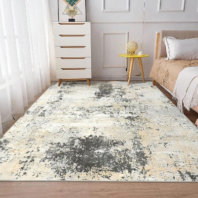 Coucheta 8x10ft Vintage Runner Rug- Non-Slip Washable Carpet, Distressed Floral Pattern, Low Pile Hallway Kitchen Bath Mat,Gray