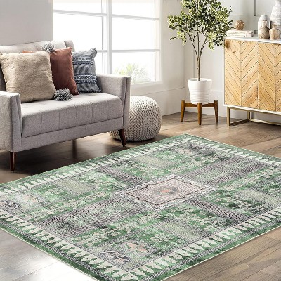 coucheta 8x10ft Washable Boho Area Rug for Living Room, Farmhouse Floral Vintage Non Slip Low Pile Large Carpet, for Bedroom, Dining, Office, Green