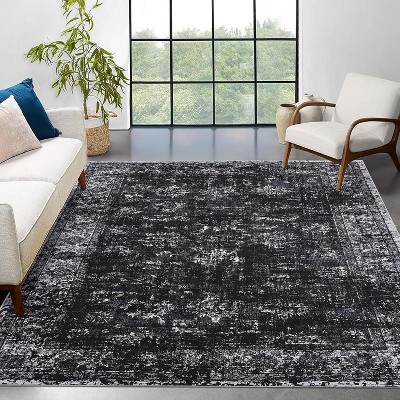 coucheta 9x12ft Machine Washable Area Rugs, Modern Bordered Non Slip Checkered Geometric Soft Bedroom Throw Carpet, for Living Room, Dining, Black