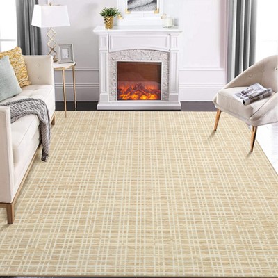 coucheta 9x12ft Machine Washable Area Rugs, Modern Bordered Non Slip Checkered Geometric Soft Bedroom Throw Carpet, for Living Room, Dining, Taupe