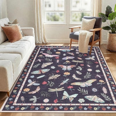 Coucheta Area Rug - Machine Washable Distressed Rug, Non-Slip Stain-Resistant Low Pile Carpet for Living Room & Dining Room(9*12ft,black)