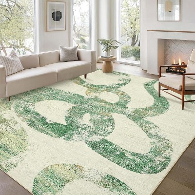 Coucheta Area Rugs for Living Room Non Slip Botanical Snake Rugs for Bedroom, Boho Scalloped Indoor Stain-Resistant Dining Room Rug for Under Table