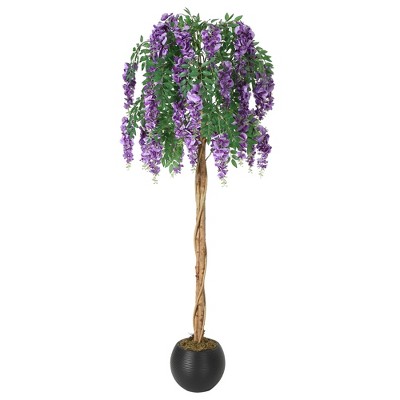 Coucheta 23" Artificial Lavender Topiary Balls - Set of 2 UV-Resistant Faux Bushes with Ground Spikes for Porch, Garden & Backyard Decor