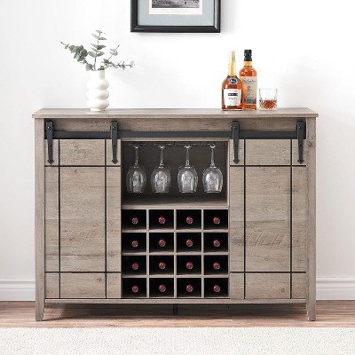 Coucheta Bar Cabinet with Barn Doors – Wine Storage with Drawer and Open Shelves, Farmhouse Style for Home or Party Hosting Brown