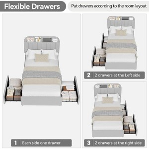 coucheta Bed Frame with 2 Flexible Drawers, Boucle Upholstered Platform Bed Frame with Bookcase Headboard,Easy Assembly