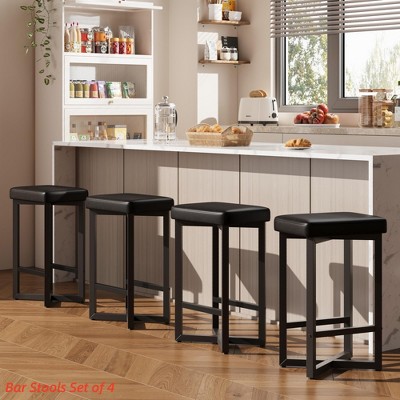Counter Height Bar Stools Set of 4, 24 Inch Saddle Barstools with Curved Surface, Leather Kitchen Island Chairs for Dining Room, Home Bar