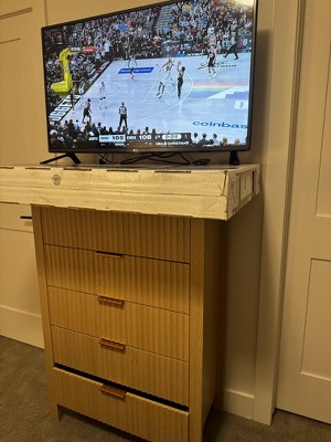 coucheta Fluted 5 Drawer Dresser, 45" Tall Slim Modern Farmhouse Wooden Chest of Drawers for Small Spaces, for Bedroom, Living Room, Hallway, Oak Ash