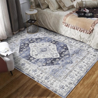 coucheta 10x13ft Machine Washable Area Rug, Modern Abstract Soft Low Pile Non-Slip Stain Resistant Carpet, for Living Room, Bedroom, Dining, Blue