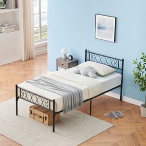coucheta Metal Platform Bed with Headboard and Under-Bed Storage Space