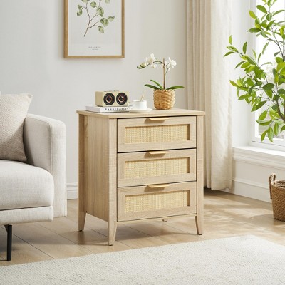 - Ample Storage & Stylish Design: Features spacious drawers with woven rattan fronts and smooth black handles, blending mid-century modern aesthetics with boho charm. The Open-plan storage area and enclosed storage offer perfect organization for books, electronics, and bedside essentials.