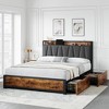 coucheta Bed Frame with Storage Linen Upholstered Headboard, 4 Drawers Charging Station