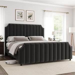 - Luxuriour Headboard & Footboard: The vertical channel tufted headboard and footboard, with metal nailhead trim decor, the queen size bed frame adds modern and luxury stye to any bedroom. Sturdy & Durable: Made with a sturdy high-quality metal frame and solid wooden slats, providing reliable and lasting support for mattresses without a box spring. Weight capacity: 1000 Lbs
