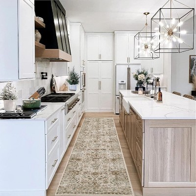 Coucheta 10x13ft Runner Rug , Machine Washable Non-Slip Low Pile, Faux Wool Stain Resistant Floor Carpet for Kitchen Bedroom Hallway,Beige