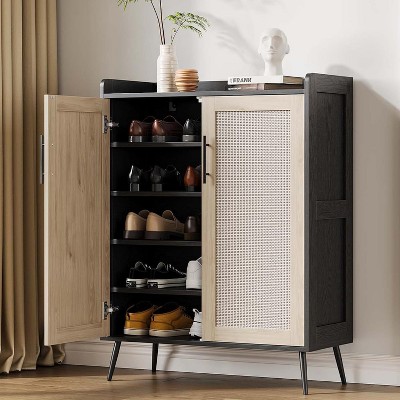 Coucheta Shoe Storage Cabinet, 42'' Tall Modern Shoe Organizer with Doors and Drawers, 3 Adjustable Shelves and Stable Base, 4-Tier Shoes Rack, Black