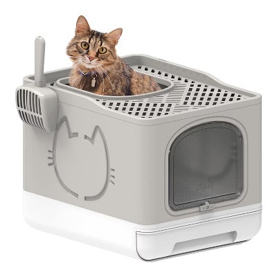 Coucheta Stainless Steel Litter Box with Lid - Large Enclosed Kitty Box, Removable Top & Scoop, Dog Proof & Odor Free, Black