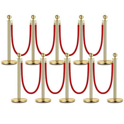 Coucheta Stanchions and Black Ropes, Crowd Control Barrier, Black Stanchions Queue Barrier Line Divider with Fillable Plastic Base Used