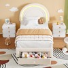 - 【Kid-Friendly Style & Cozy Fabric】Cute rainbow-shaped headboard in soft color, wrapped in plush short-pile fleece. Blends beauty and coziness, with a snuggly texture that appeals to girls and boys—perfect for kids' bedroom decor