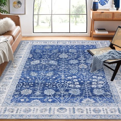 Coucheta Vintage Washable Runner Rug , Non-Slip Floral Carpet for Entryway & Hallway, Low Pile Oriental Prin£¨10*13ft,Blue)