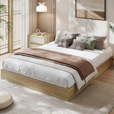 Elevate your bedroom with this queen size wood platform bed frame, where modern minimalism meets practical functionality. Designed to complement contemporary, Scandinavian, or minimalist decor, its clean lines and natural wood grain finish add warmth and elegance to any space—perfect for apartments, guest rooms, or primary bedrooms.The floor-standing design eliminates dust buildup under the bed, making cleaning a breeze. No more struggling with hard-to-reach corners; this bed keeps your bedroom tidy with its seamless base that sits flush with the floor.Crafted for durability, the bed features sturdy wooden slats that provide reliable support for your mattress without the need for a box spring. This not only saves you money but also ensures even weight distribution, extending your mattress’s lifespan. The robust construction minimizes sagging, keeping your bed stable for years of use.Enjoy peaceful nights with a noise-free design: tight slat connections and smooth joints eliminate creaks or rattles, even with movement. Whether you’re a light sleeper or share the bed, you’ll rest undisturbed.Assembly is hassle-free with all labeled parts, tools, and clear instructions included. Set up your new bed in under an hour without professional help. Compact yet stylish, this wood bed frame maximizes space while delivering the comfort and durability you need for a restful night’s sleep.