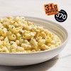 I wish the carb count was just a little lower but the flavor on this is really good for a microwave meal. The amount of chicken is a little skimpy but the texture is really good. I added just a little bit more garlic powder and onion powder. Portion size is on the smaller side, but it's under 500 calories so it's good if you're restricting that aspect. I saw a complaint about the price but I think it's good for someone who's single and doesn't want a big family size portion or bother cooking it yourself. It was rigatoni instead of elbow, but I also prefer that.