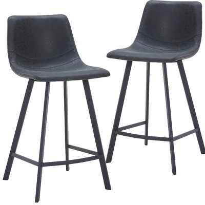 Counter Stool – 38.2" H With Brown Faux Leather Seat, Powder-Coated Steel Frame By Zuo Modern