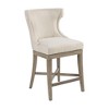 Description Define your dining area with the elegance of the Madison Park Carson Counter Stool with Swivel Seat. This pholstered wingback style counter chair features clean lines and curve, for a sophisticated silhouette. A bronze kick plate protects the footrest from every day wear and tear, while the swivel function allows you to easily rotate the seat. The straight rubber wood legs feature a smooth reclaimed grey wood finishes that complements the upholstery to create a beautiful transitional look in your dining room. Assembly is required. Max weight capacity: 300 lbs. Product Details See below 1 Counter Stool:21.75inW x 24.25inD x 39.25inH Seat Dimension:21inW x 17inD x 25.25inH Seat Cushion Thickness:4.125in Legs Size (Front and Back Leg Upper):1.75inW x 1.75inD Legs Size (Front and Back Leg Bottom):1.25inW x 1.25inD Leg Height:19.5in Distance Between Legs(Front-Front):17.75in Distance Between Legs(Front-Back):17.5in Distance Between Legs(Back-Back):16.25in Footrest Height:7.25in Back Rest Size:21.75inL x 14inH Maximum Weight Capacity:300 LBS Material Frame Composition: Solid wood and plywood Leg Material: Solid wood Wood Finish: Reclaimed Gray Smooth Fabric Composition: 100% Polyester Cushion or Upholstery Fill Material: Foam Back Fill Material: Foam