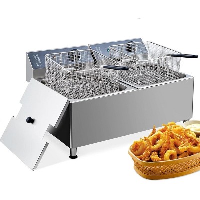 Countertop Deep Fryer Single Cylinder Oil Capacity 20L With Timer, Rear Flip, 201 Stainless Steel Basket, Adjustable Temperature Stainless Deep Fryers