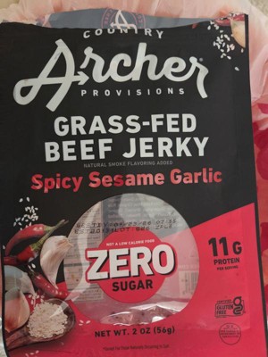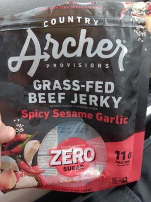Country Archer Spicy Sesame Garlic Grass-Fed Beef Jerky - Case of 12/2 oz