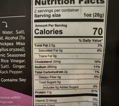 - HIGH PROTEIN: 11g of protein, 70 calories, 2.5g of fat, 0g of sugar - per 1 ounce serving.