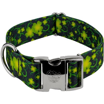 We have your gold at the end of the rainbow with Country Brook Petz' Irish Pride 1 ½ Inch Deluxe Dollar Collection! These festive prints encaptures the spirit of Irish tradition with beautiful designs. Created using vibrant colors, these prints will have you feeling lucky. At the heart of this exceptional collar lies our premium polyester webbing, a high-strength and resilient material known for its remarkable durability. Whether your dog is a spirited explorer or a playful companion, this collar can withstand the test of time and keep up with their boundless energy. The sleek and smooth texture of the polyester webbing ensures a gentle touch against your dog's neck, eliminating any discomfort or irritation. Your loyal companion will revel in the luxurious comfort that this collar provides, allowing them to strut their stuff with unmatched confidence. To further elevate the collar's functionality, we constructed it with YKK brand buckles, renowned for their exceptional quality and reliability. These buckles are not only stylish but also incredibly secure, giving you peace of mind knowing that your furry friend is always safe and sound. The YKK brand buckles are engineered with precision, featuring a seamless interlocking mechanism that guarantees a secure fit. They are easy to use and offer a hassle-free experience, allowing you to fasten and release the collar with a simple snap effortlessly. Whether you're preparing for a leisurely stroll or an exciting outdoor adventure, this collar ensures quick and convenient handling. Besides its undeniable elegance, our Deluxe Dog Collar is also equipped with a sturdy welded D-ring for easy leash attachment. This feature guarantees a seamless transition from playtime to outdoor walks, allowing you to maintain control without compromising on style or comfort. Indulge your furry friend in the opulence they deserve with our Deluxe Dog Collar. From the premium polyester webbing to the renowned YKK brand buckles, every aspect of this collar is a testament to superior craftsmanship and unparalleled quality made right here in America. Give your loyal companion the gift of comfort and style, and watch them turn heads wherever they go.