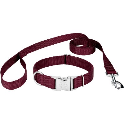 Country Brook Petz Everyday Nylon Dog Collar and Leash (Extra Small, 3/8 Inch Wide, Burgundy)