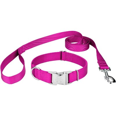 Country Brook Petz Everyday Nylon Dog Collar and Leash (Medium, 3/4 Inch Wide, Fuchsia)