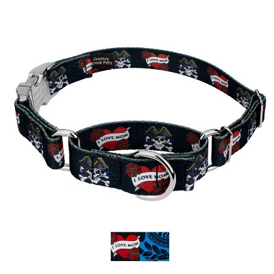 This rugged collar from Country Brook Petz is the perfect amount of attitude for your pup. These designs will have your pup feeling bad to the bone. Printed using state-of-the-art colorfast inks, our collars will not run or bleed. Crafted from industry-leading hardware and webbing, Country Brook Petz’ Attitude Collection of Martingale with Deluxe Buckle Dog Collars stands up under tough conditions, all while keeping your furry friend looking fab.