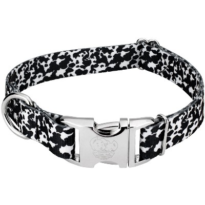 This rugged collar from Country Brook Petz is the perfect amount of attitude for your pup. These designs will have your pup feeling bad to the bone. Crafted with care and attention to detail, our classy premium line of collars are for canines who need to look fabulous both at home and at the dog park. It starts with the highest quality 100% polyester webbing that is both soft and strong. This means the collar will feel like a hug whenever your dog wears it, but it also provides long-lasting durability to withstand everyday adventures. The collar features a brilliant aluminum side-release buckle with a mirror-like finish, allowing easy and secure fastening. The sturdy welded D-ring provides a convenient attachment point for your dog's leash, ensuring a safe and controlled walking experience. Country Brook Petz’ premium patterned collars are vibrant, comfortable collars made right here in the U.S.A. Our carefully curated sewing professionals have decades of combined experience and ensure that every collar is meticulously inspected for quality craftsmanship. With an array of eye-catching patterns, you can showcase your dog's unique personality and style. From trendy florals to playful geometric designs, there's a pattern to suit every taste and preference.