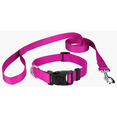 Country Brook Petz Premium Nylon Dog Collar and Leash Set for Small Medium Large Dogs - Vibrant 30+ Color Selection (Medium, 3/4 Inch, Fuchsia)