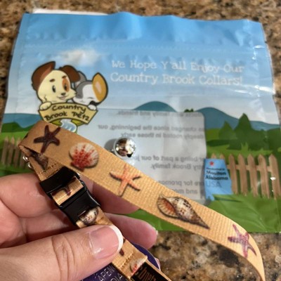 Country Brook Petz’ cat drip hits different! They will look stunning, and the integrated safety features will help keep your cat out of danger. So whether your cat spends all day lounging on the sofa or exploring the great outdoors, they'll love wearing our cat collar. Get your sand pail and shovel ready for Country Brook Petz' Seashells Cat Collar. Realistic seashells and starfish line up along a sandy background in this summer design. Earthy hues and bright lighting portray a warm vibe throughout the pattern. The soft and comfy polyester is gentle on your cat and will not irritate sensitive skin. In addition, this material is super durable, ensuring that the collar will last through all of your cat's adventures. Your cat's safety is our top concern, so we use a breakaway buckle that smartly releases the collar whenever it gets snagged on an obstacle. The adjustable strap ensures a secure and snug fit. Adorned with a bell, the collar alerts birds and other wildlife to your cat's presence, reducing the likelihood of your floofy cat catching prey. Feel confident knowing your cat's collar was lovingly made right here in the U.S.A.