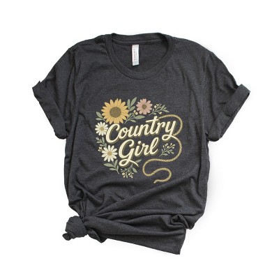 Product Name: Country Girl Hat Puff Print - Womens Short Sleeve Graphic T-Shirt
