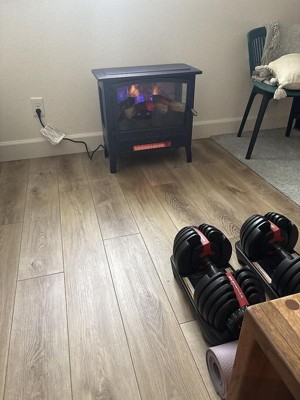 Warm up on a cool night with the addition of the Country Living Infrared Electric Fireplace Stove. This quality, metal crafted body stove features an etched glass operable door with two side glass panels for an enhanced flame viewing experience. LED lit, adjustable flames projections reflect on a beautiful herringbone faux brick back panel, while inner glowing hand-finished logs tie the overall illusion of a wood burning fire together for a heightened sense of realism.An integrated supplemental heater ensures your space always stays cozy despite the weather outside. Enjoy supplemental heat for up to 1,000 Sq. Ft. with the convenient press of a button. The bottom located heater also allows for greater visibility of the beautiful flame effects. Easily portable, you'll be able to add instant, on-demand heat to any room in your home. Alternatively, simply turn off the heater to enjoy the calming ambience of the flames only for year round, all-season use.