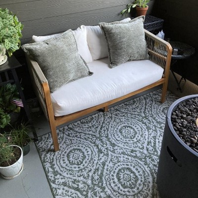 [This review was collected as part of a promotion.] The Nicole Miller New York Patio Country outdoor rug is the perfect addition to my deck. The pattern is aesthetically pleasing. The rug itself is high quality and I can see it lasting many seasons. I'm using it outside, but you could totally use it inside a sun room and get the same wonderful effect. Highly recommended!