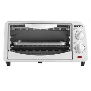 This Courant toaster oven brings a large 9-liter interior volume while occupying limited space on your countertop. Features include a 30-minute timer, bake-broil-toast selector, as well as a rack and baking pan.