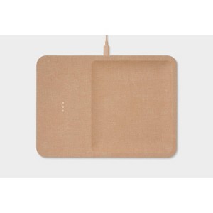 - Wrapped in designer-quality Belgian Linen, this wireless charger effortlessly blends in wherever it’s placed.