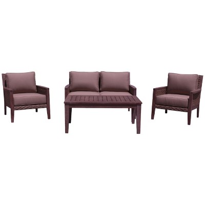 Vacation at home and feel like you are at a resort with the Bridgeport II collection. Made of high grade FSC certified Eucalyptus wood and designed to be both comfortable and practical. This collection is made very comfortable with the Sunbrella brand fabric filled with densified foam and Dacron vertical fiber for the ultimate comfort. With a beautiful stained finish to enhance the wood you get a rustic look and feel. Synthetic barnwood woven resin finishes the framed look and adds additional value. Easy to assemble and 1 Year Limited Manufacturer Warranty