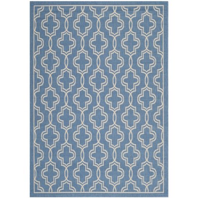 Courtyard CY1356 Power Loomed Indoor and Outdoor Area Rug - Natural/Blue - 6'7"x9'6" - Safavieh