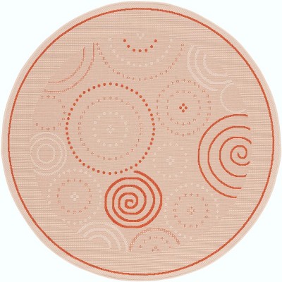 Courtyard CY1502 Power Loomed Indoor and Outdoor Area Rug - Natural/Terra - 5'3" Round - Safavieh