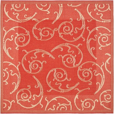 Courtyard CY1502 Power Loomed Indoor and Outdoor Area Rug - Red/Natural - 6'7"x6'7" - Safavieh