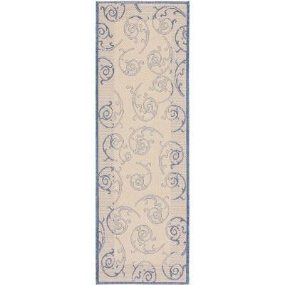 Courtyard CY1502 Power Loomed Indoor and Outdoor Runner Rug - Natural/Blue - 2'3"x6'7" - Safavieh