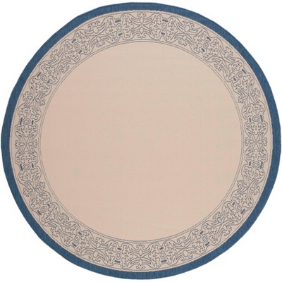 Courtyard CY1588 UV & Stain Resistant Non-Shedding Power Loomed Indoor/Outdoor Area Rug - Natural/Blue - 6'7" Round - Safavieh