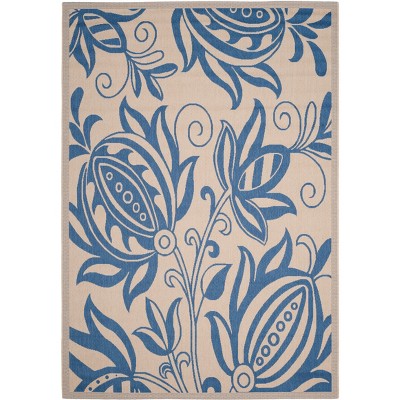 Courtyard CY1704 Power Loomed Indoor and Outdoor Area Rug - Natural/Blue - 6'7"x9'6" - Safavieh
