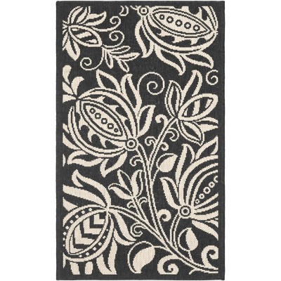 Courtyard CY1906 UV & Stain Resistant Non-Shedding Power Loomed Indoor/Outdoor Accent Rug - Black/Sand - 2'7"x5' - Safavieh