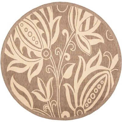 Courtyard CY1906 UV & Stain Resistant Non-Shedding Power Loomed Indoor/Outdoor Area Rug - Brown/Natural - 6'7" Round - Safavieh
